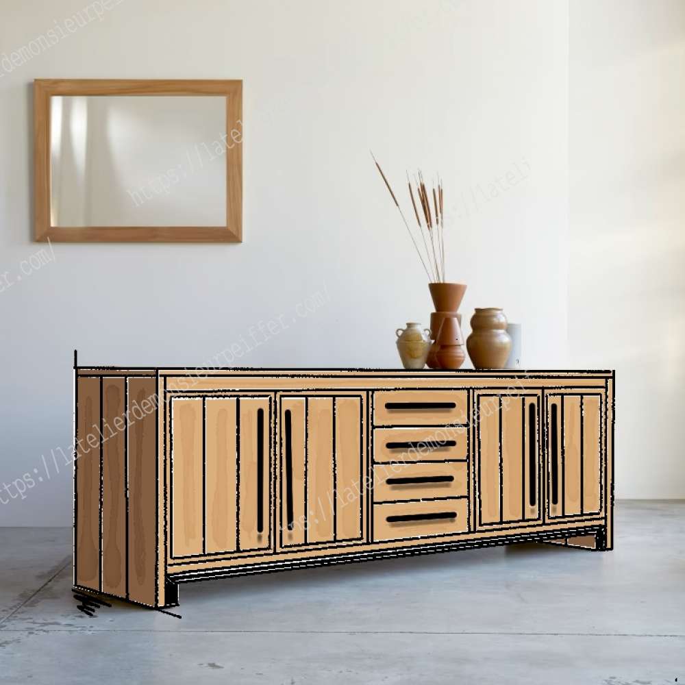 Buffet bois massif sur mesure et sur commande. Longueur: de 200 cm à 290 cm Profondeur: 50 cm Hauteur: 90 cm 🏷Prix : 1790€ (quelque soit la dimension/finition nature) 🖌️Finition nature: Gratuit 🖌️Finition blanche, or, noir: 30€ 👌Vitrification mat : 120€ 🚚Livraison Nord-pas-de-Calais par l'atelier: 90€ 🚚Livraison 🇫🇷 🇧🇪 🇱🇺 🇮🇹 🇨🇭 🇲🇨 par transporteur avec 2 livreurs: 250€ 🚚Livraison 🇩🇪 🇪🇸 🇵🇹par transporteur avec 2 livreurs: 370€ Rendez-vous pour une visite du showroom à Houplin-Ancoisne 59263 7jrs/7 📞07.82.14.30.86 ou ouverture publique le premier dimanche de chaque mois de 14h à 17h toute l'année