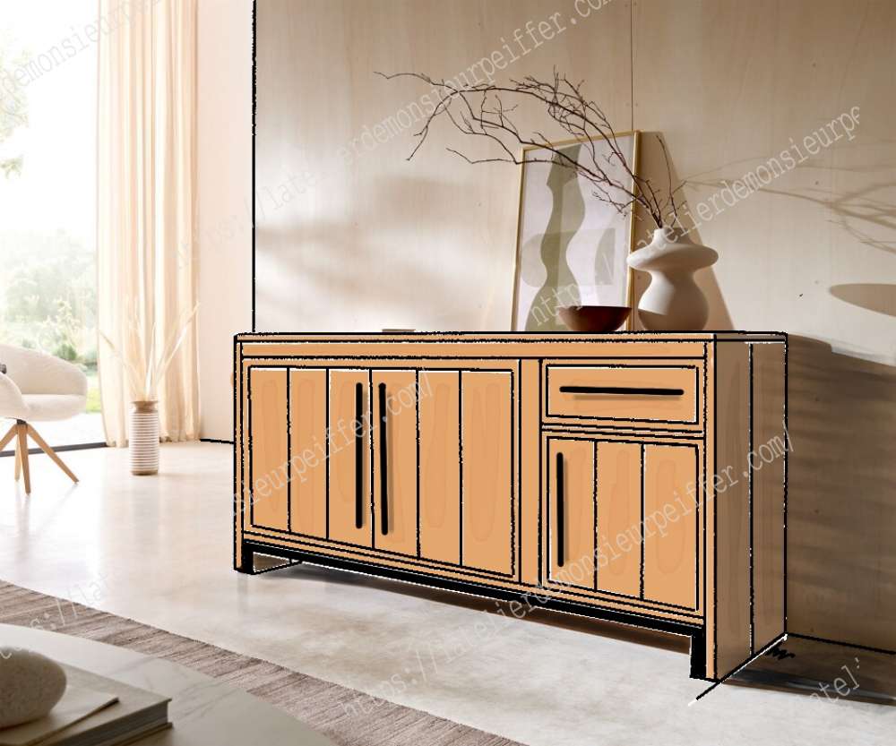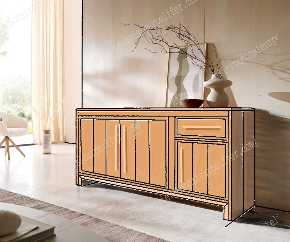 Buffet bois massif 3 porteset 1 tiroirs (ref : PWb4bis)