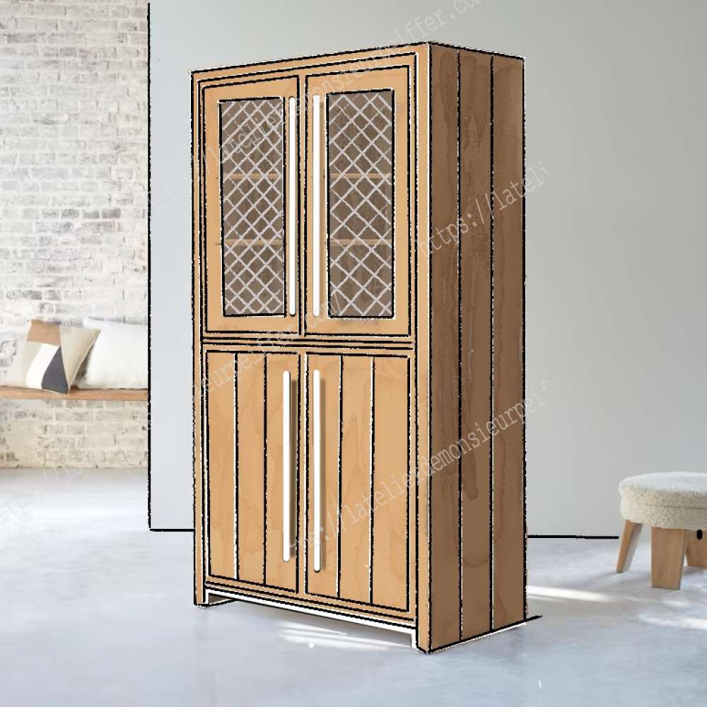 Buffet haut bois massif avec porte grillage à poule sur mesure et sur commande. Longueur: 80 cm ou 115 cm Profondeur: 50 cm Hauteur: 190 cm 🏷Prix : 1690€ (quelque soit la dimension/finition nature) 🖌️Finition nature: Gratuit 🖌️Finition blanche, or, noir: 30€ 👌Vitrification mat : 120€ 🚚Livraison Nord-pas-de-Calais par l'atelier: 90€ 🚚Livraison 🇫🇷 🇧🇪 🇱🇺 🇮🇹 🇨🇭 🇲🇨 par transporteur avec 2 livreurs: 250€ 🚚Livraison 🇩🇪 🇪🇸 🇵🇹par transporteur avec 2 livreurs: 370€ Rendez-vous pour une visite du showroom à Houplin-Ancoisne 59263 7jrs/7 📞07.82.14.30.86 ou ouverture publique le premier dimanche de chaque mois de 14h à 17h toute l'année
