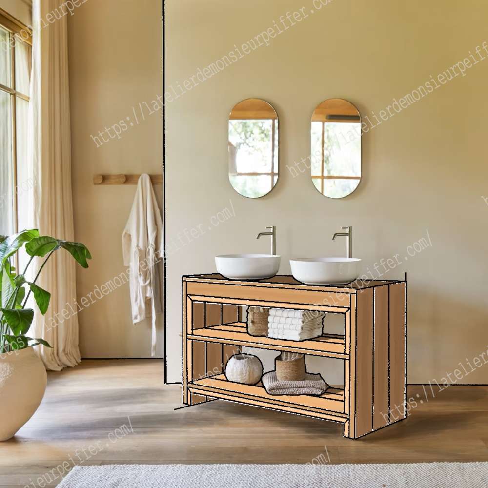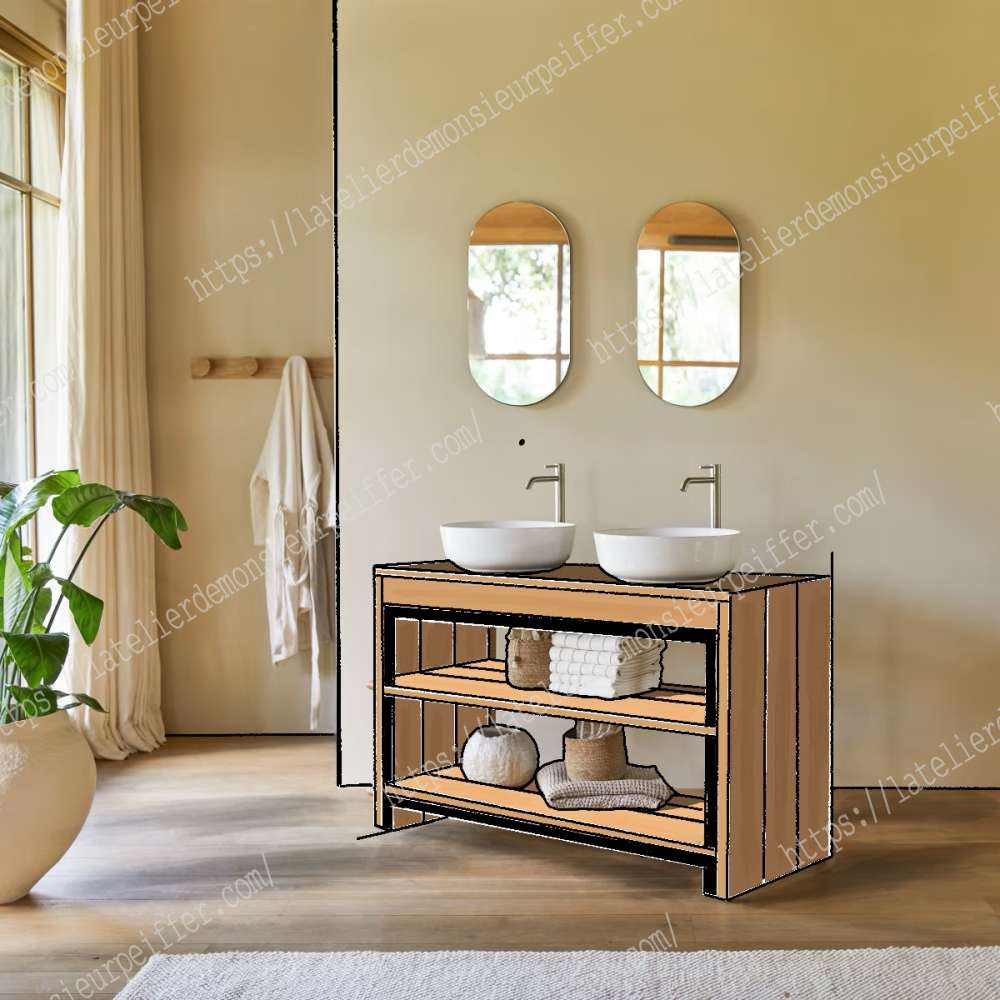 Pour votre salle de bain voici un meuble sous vasque bois massif sur mesure et sur commande. Longueur: 60 cm à 120 cm Profondeur: 50 cm Hauteur: 80 cm 🏷Prix : 690€ (quelque soit la dimension/finition nature) 🖌️Finition nature: Gratuit 🖌️Finition blanche, or, noir: 30€ 👌Vitrification mat : 90€ 🚚Livraison Nord-pas-de-Calais par l'atelier: 90€ 🚚Livraison 🇫🇷 🇧🇪 🇱🇺 🇮🇹 🇨🇭 🇲🇨 par transporteur avec 2 livreurs: 250€ 🚚Livraison 🇩🇪 🇪🇸 🇵🇹par transporteur avec 2 livreurs: 370€ Rendez-vous pour une visite du showroom à Houplin-Ancoisne 59263 7jrs/7 📞07.82.14.30.86 ou ouverture publique le premier dimanche de chaque mois de 14h à 17h toute l'année