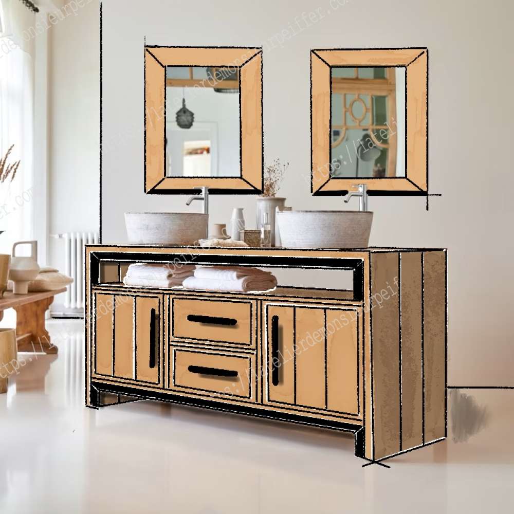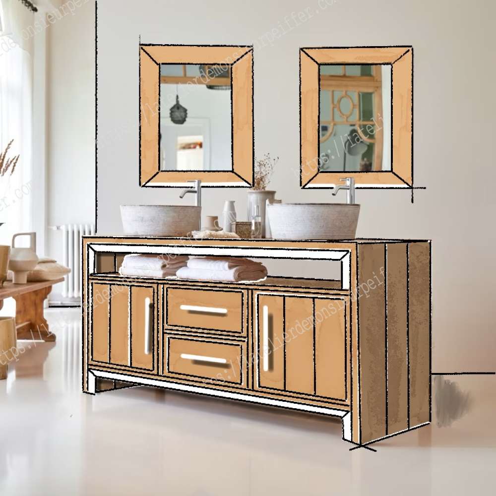 Pour votre salle de bain voici un meuble sous vasque bois massif sur mesure et sur commande. Longueur: de 125 cm à 150 cm Profondeur: 50 cm Hauteur: 80 cm 🏷Prix : 1290€ (quelque soit la dimension/finition nature) 🖌️Finition nature: Gratuit 🖌️Finition blanche, or, noir: 30€ 👌Vitrification mat : 120€ 🚚Livraison Nord-pas-de-Calais par l'atelier: 90€ 🚚Livraison 🇫🇷 🇧🇪 🇱🇺 🇮🇹 🇨🇭 🇲🇨 par transporteur avec 2 livreurs: 250€ 🚚Livraison 🇩🇪 🇪🇸 🇵🇹par transporteur avec 2 livreurs: 370€ Rendez-vous pour une visite du showroom à Houplin-Ancoisne 59263 7jrs/7 📞07.82.14.30.86 ou ouverture publique le premier dimanche de chaque mois de 14h à 17h toute l'année