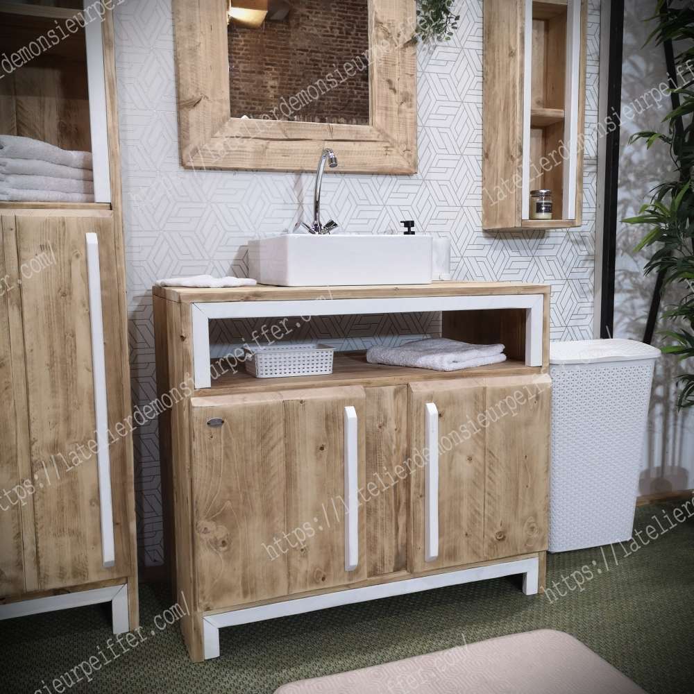 Pour votre salle de bain voici un meuble sous vasque bois massif finition blanche sur mesure et sur commande. Longueur: 80 cm à 120 cm Profondeur: 50 cm Hauteur: 80 cm 🏷Prix : 890€ (quelque soit la dimension/finition nature) 🖌️Finition nature: Gratuit 🖌️Finition blanche, or, noir: 30€ 👌Vitrification mat : 90€ 🚚Livraison Nord-pas-de-Calais par l'atelier: 90€ 🚚Livraison 🇫🇷 🇧🇪 🇱🇺 🇮🇹 🇨🇭 🇲🇨 par transporteur avec 2 livreurs: 250€ 🚚Livraison 🇩🇪 🇪🇸 🇵🇹par transporteur avec 2 livreurs: 370€ Rendez-vous pour une visite du showroom à Houplin-Ancoisne 59263 7jrs/7 📞07.82.14.30.86 ou ouverture publique le premier dimanche de chaque mois de 14h à 17h toute l'année