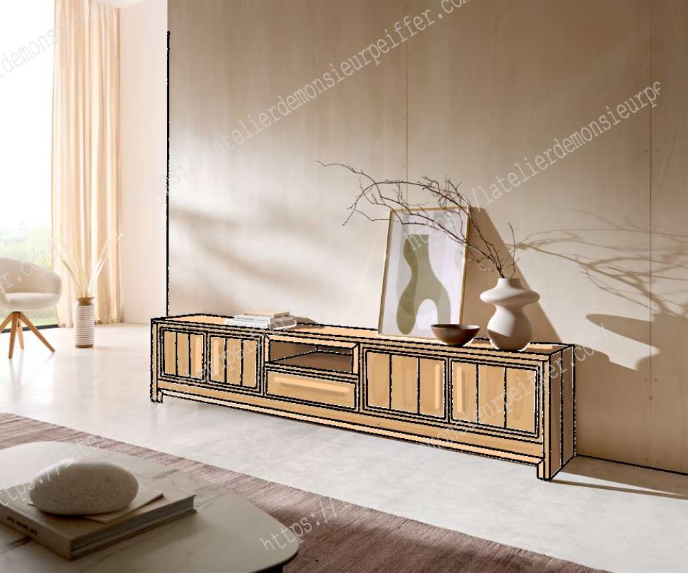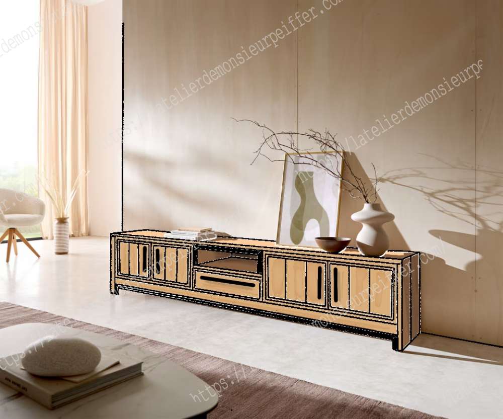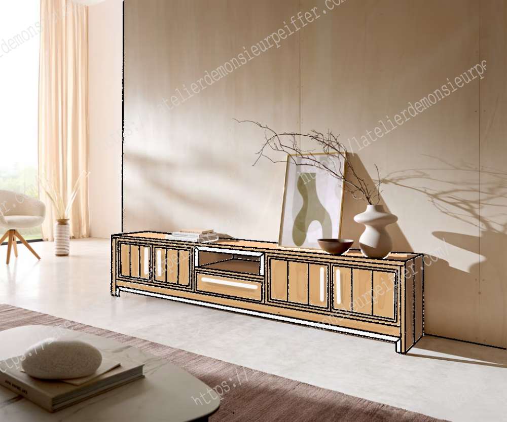 Meuble Tv bois massif sur mesure et sur commande. Longueur: de 220 cm à 290 cm Profondeur: 40 cm Hauteur: 55 cm 🏷Prix : 1390€ (quelque soit la dimension/finition nature) 🖌️Finition nature: Gratuit 🖌️Finition blanche, or, noir: 30€ 👌Vitrification mat : 90€ 🚚Livraison Nord-pas-de-Calais par l'atelier: 90€ 🚚Livraison 🇫🇷 🇧🇪 🇱🇺 🇮🇹 🇨🇭 🇲🇨 par transporteur avec 2 livreurs: 250€ 🚚Livraison 🇩🇪 🇪🇸 🇵🇹par transporteur avec 2 livreurs: 370€ Rendez-vous pour une visite du showroom à Houplin-Ancoisne 59263 7jrs/7 📞07.82.14.30.86 ou ouverture publique le premier dimanche de chaque mois de 14h à 17h toute l'année