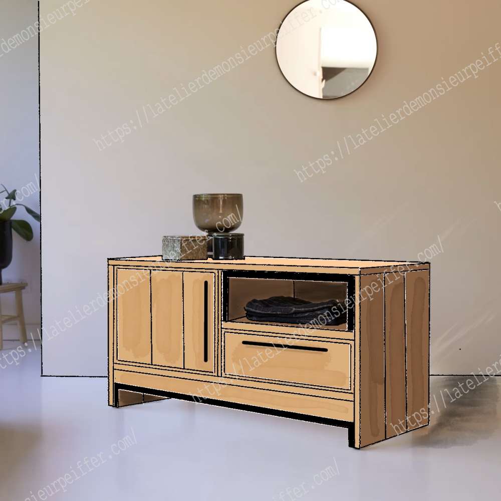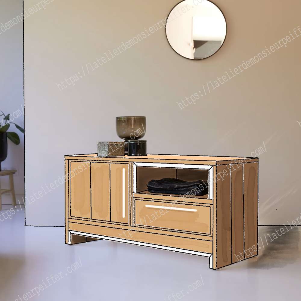 Meuble Tv bois massif sur mesure et sur commande. Longueur: de 90 cm à 150 cm Profondeur: 40 cm Hauteur: 55 cm 🏷Prix : 890€ (quelque soit la dimension/finition nature) 🖌️Finition nature: Gratuit 🖌️Finition blanche, or, noir: 30€ 👌Vitrification mat : 90€ 🚚Livraison Nord-pas-de-Calais par l'atelier: 90€ 🚚Livraison 🇫🇷 🇧🇪 🇱🇺 🇮🇹 🇨🇭 🇲🇨 par transporteur avec 2 livreurs: 250€ 🚚Livraison 🇩🇪 🇪🇸 🇵🇹par transporteur avec 2 livreurs: 370€ Rendez-vous pour une visite du showroom à Houplin-Ancoisne 59263 7jrs/7 📞07.82.14.30.86 ou ouverture publique le premier dimanche de chaque mois de 14h à 17h toute l'année