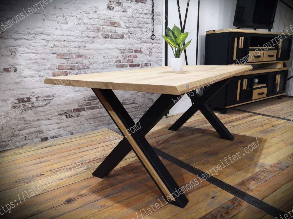Meuble industriel sur mesure et sur commande. Rendez-vous pour une visite du showroom 7jrs/7 📞07.82.14.30.86 Plateau Chêne massif🌳50 mm vitrifiée mat Meuble poinçonné Dimensions: 180 cm/105 cm-🏷1290€ 200 cm/105 cm-🏷1390€ 220 cm/105cm-🏷1490€ 240 cm/105 cm-🏷1590€ 250 cm/105 cm-🏷1650€ 👣 en forme de X en tube carré de 80 mm Patin réglable en hauteur⬆ 🚚Livraison Nord-pas-de-Calais par l'atelier: Gratuit 🚚Livraison 🇫🇷 🇧🇪 🇱🇺 🇮🇹🇨🇭 🇲🇨 par transporteur avec 2 livreurs: 250€ 🚚Livraison 🇩🇪 🇪🇸 🇵🇹par transporteur avec 2 livreurs: 370€