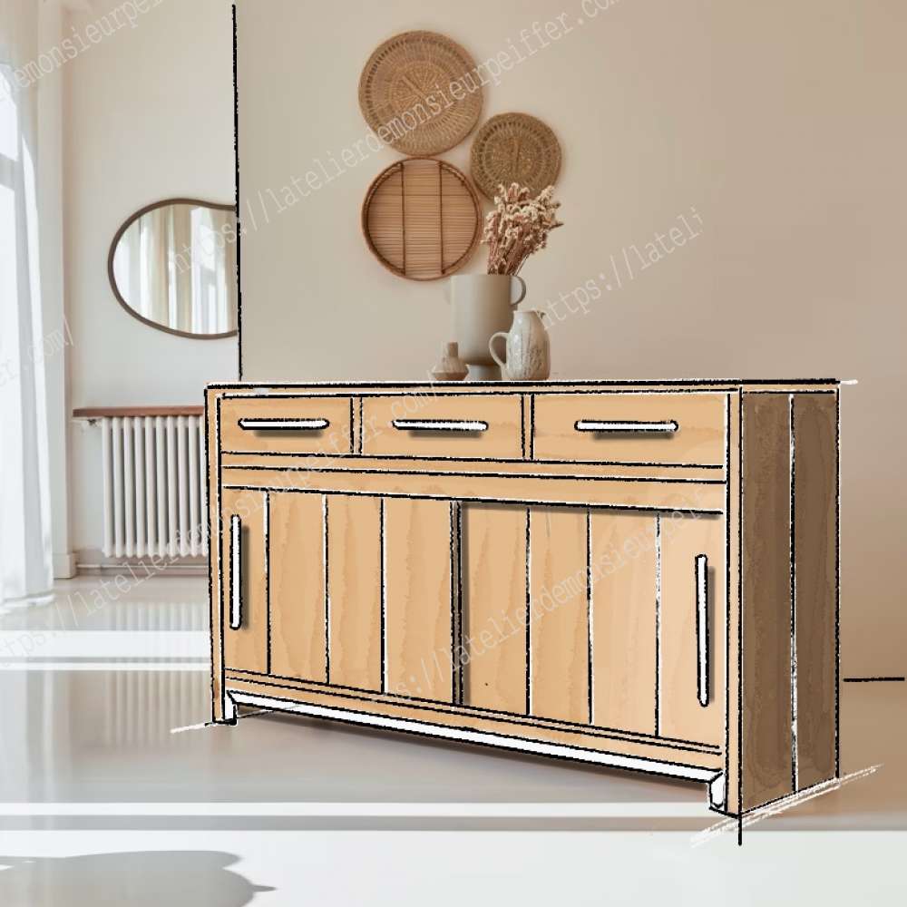 Buffet bois massif sur mesure et sur commande. Longueur: de 180 cm à 290 cm Profondeur: 50 cm Hauteur: 90 cm 🏷Prix : 1690€ (quelque soit la dimension/finition nature) 🖌️Finition nature: Gratuit 🖌️Finition blanche, or, noir: 30€ 👌Vitrification mat : 120€ 🚚Livraison Nord-pas-de-Calais par l'atelier: 90€ 🚚Livraison 🇫🇷 🇧🇪 🇱🇺 🇮🇹 🇨🇭 🇲🇨 par transporteur avec 2 livreurs: 250€ 🚚Livraison 🇩🇪 🇪🇸 🇵🇹par transporteur avec 2 livreurs: 370€ Rendez-vous pour une visite du showroom à Houplin-Ancoisne 59263 7jrs/7 📞07.82.14.30.86 ou ouverture publique le premier dimanche de chaque mois de 14h à 17h toute l'année