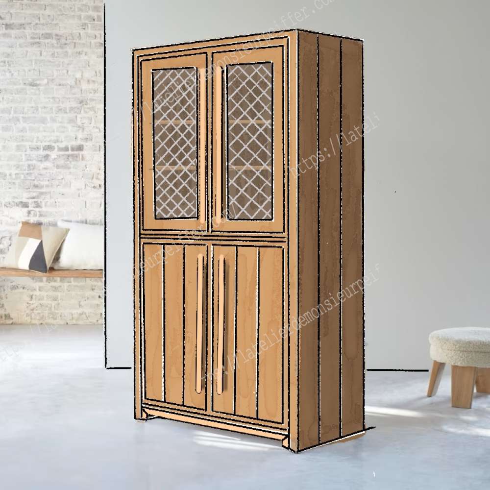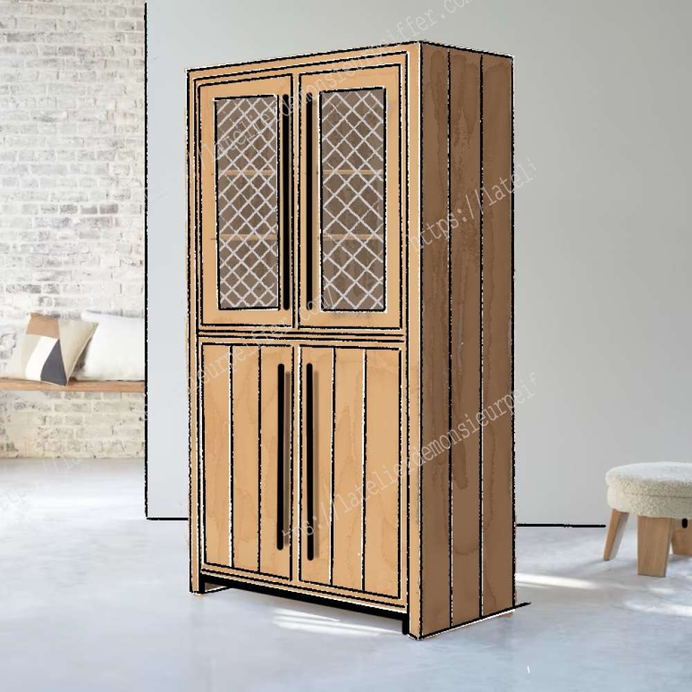 Buffet haut bois massif avec porte grillage à poule sur mesure et sur commande. Longueur: 80 cm ou 115 cm Profondeur: 50 cm Hauteur: 190 cm 🏷Prix : 1690€ (quelque soit la dimension/finition nature) 🖌️Finition nature: Gratuit 🖌️Finition blanche, or, noir: 30€ 👌Vitrification mat : 120€ 🚚Livraison Nord-pas-de-Calais par l'atelier: 90€ 🚚Livraison 🇫🇷 🇧🇪 🇱🇺 🇮🇹 🇨🇭 🇲🇨 par transporteur avec 2 livreurs: 250€ 🚚Livraison 🇩🇪 🇪🇸 🇵🇹par transporteur avec 2 livreurs: 370€ Rendez-vous pour une visite du showroom à Houplin-Ancoisne 59263 7jrs/7 📞07.82.14.30.86 ou ouverture publique le premier dimanche de chaque mois de 14h à 17h toute l'année
