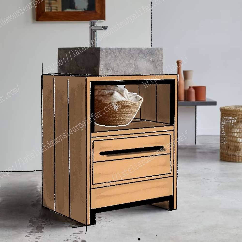 Meuble sous vasque 1 tiroir et 1 niche (ref : PWv3)