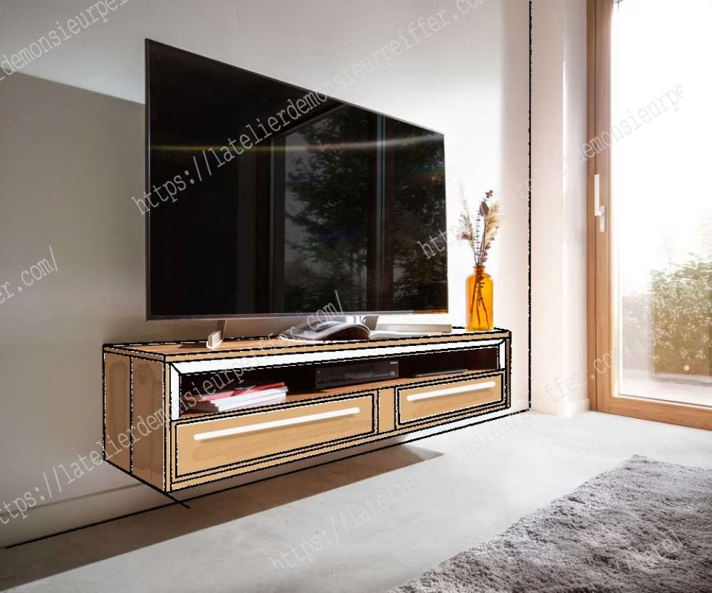 Meuble Tv suspendu 2 clapets et 1 niche (ref : PWtv6)