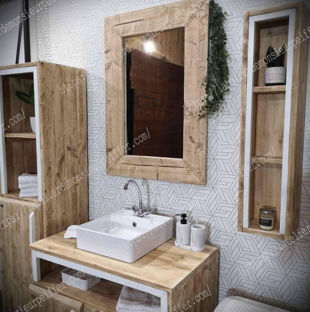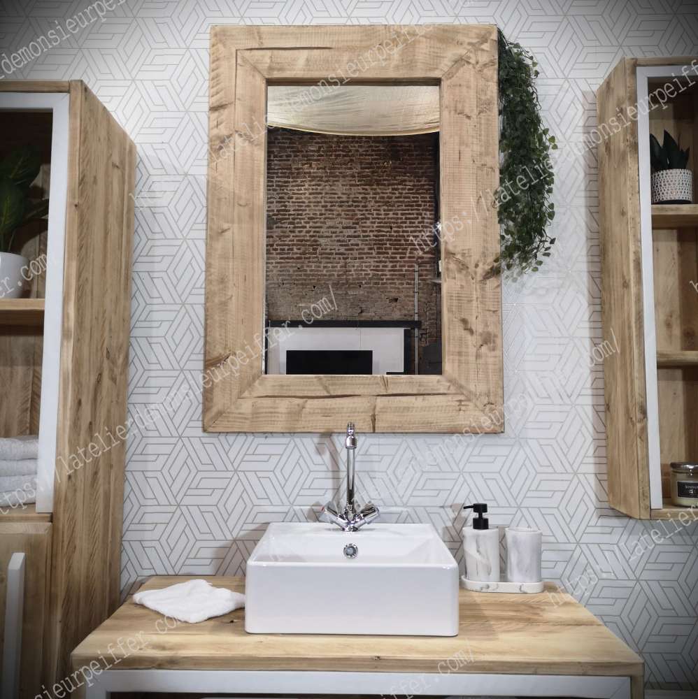 Pour votre salle de bain voici un miroir en bois massif sur commande. Longueur: 60 cm Hauteur: 100 cm 🏷Prix : 250€ 👌Vitrification mat : 30€ 🚚Livraison Nord-pas-de-Calais par l'atelier: 90€ 🚚Livraison 🇫🇷 🇧🇪 🇱🇺 🇮🇹 🇨🇭 🇲🇨 par transporteur avec 2 livreurs: 250€ 🚚Livraison 🇩🇪 🇪🇸 🇵🇹par transporteur avec 2 livreurs: 370€ Rendez-vous pour une visite du showroom à Houplin-Ancoisne 59263 7jrs/7 📞07.82.14.30.86 ou ouverture publique le premier dimanche de chaque mois de 14h à 17h toute l'année
